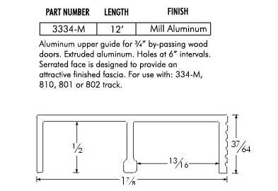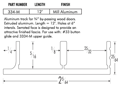 Assembly No.11 - Extruded aluminum sliding door track and guide system for heavier 3/4" by-passing doors. Serrated face is designed to provide an attractive finished fascia. Four #33 button glides provide a smooth sliding action. Installation screws included. For 3/4" thick ...